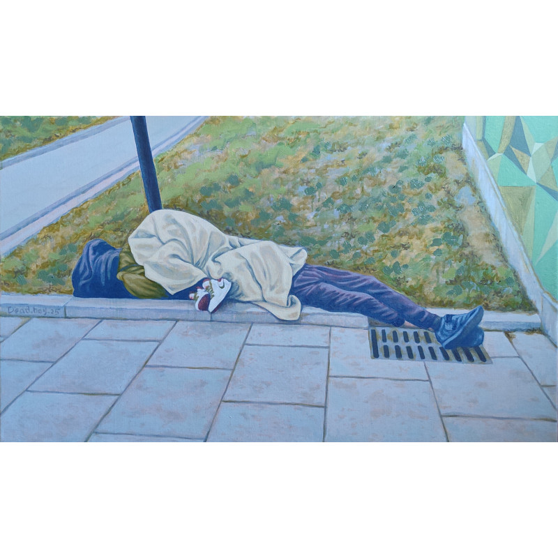 In the City of Ghosts, Chiron appears as two poor souls who, trying to keep warm, fused into one. From beneath a shared skin, only two pairs of legs emerge. They lie at the entrance to an underground passage. Faceless, voiceless, merged into a single creature driven mad by grief.